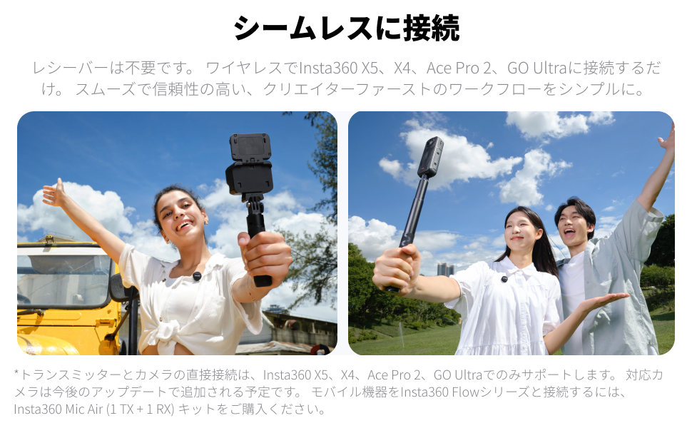 insta360X4に使えるかと思い購入。結果はBluetooth接続できず。元々X5やPRO2に対応していることは知っていたので、レシーバーを使用すれば接続できると思い購入しました。しかし何度試しても接続できませんでした。同じinsta360なので、せめてレシーバーを使えば接続できるようにはして欲しかった。非常に残念。
